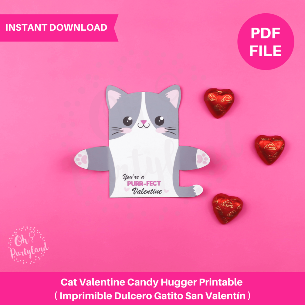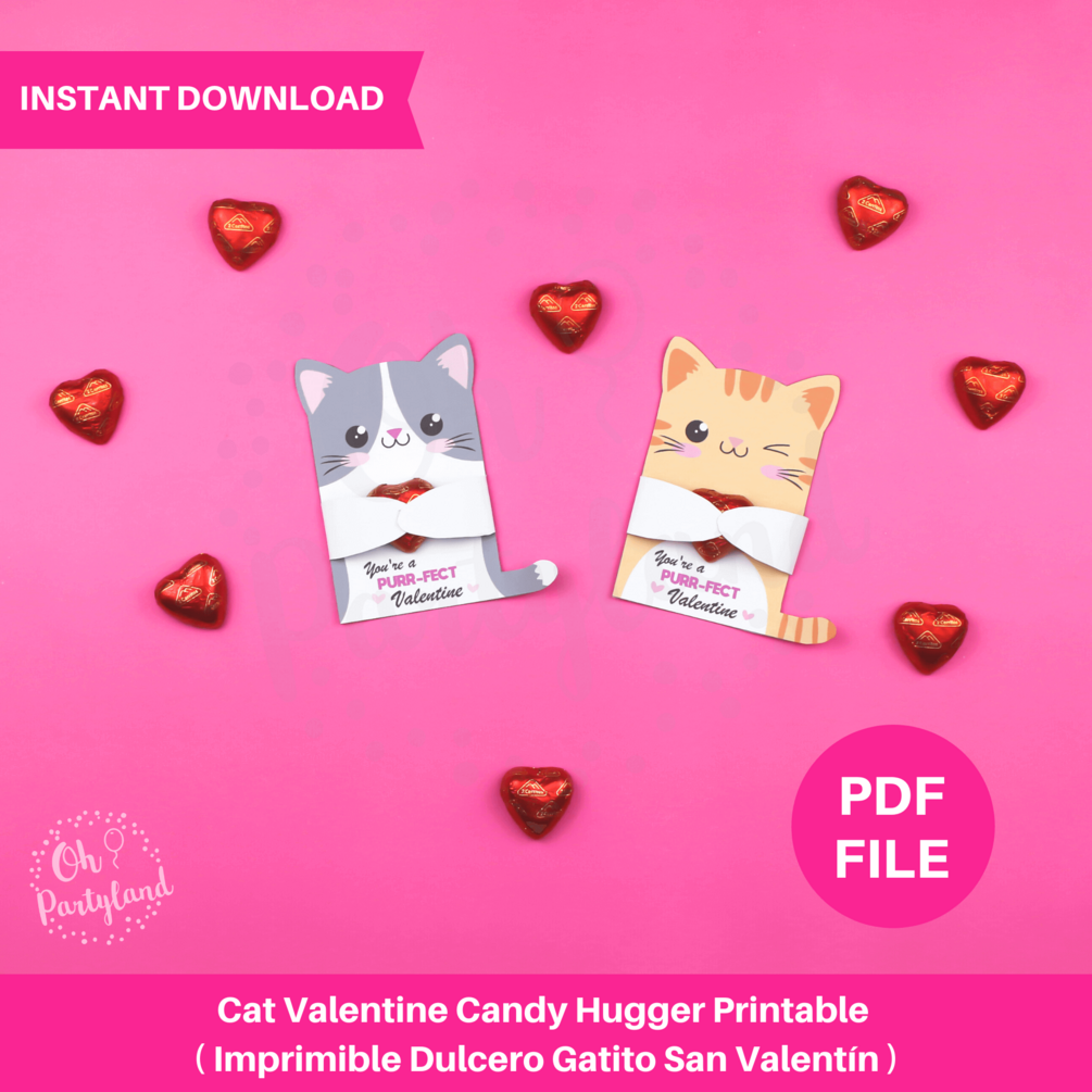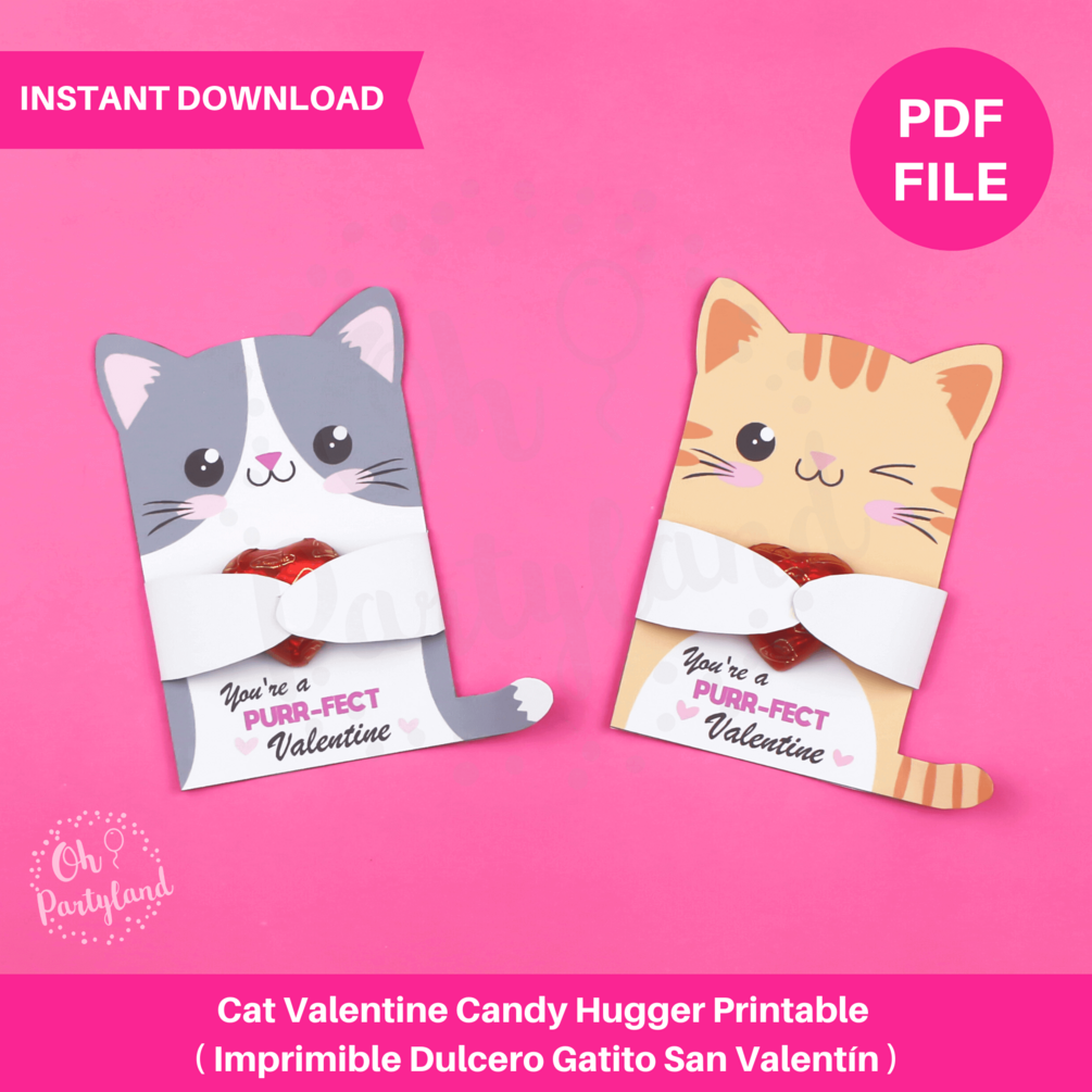 Cat Valentine Candy Hugger, Valentine Classroom Candy Holder, Kitten Valentine's Day Card - Digital file #0023
